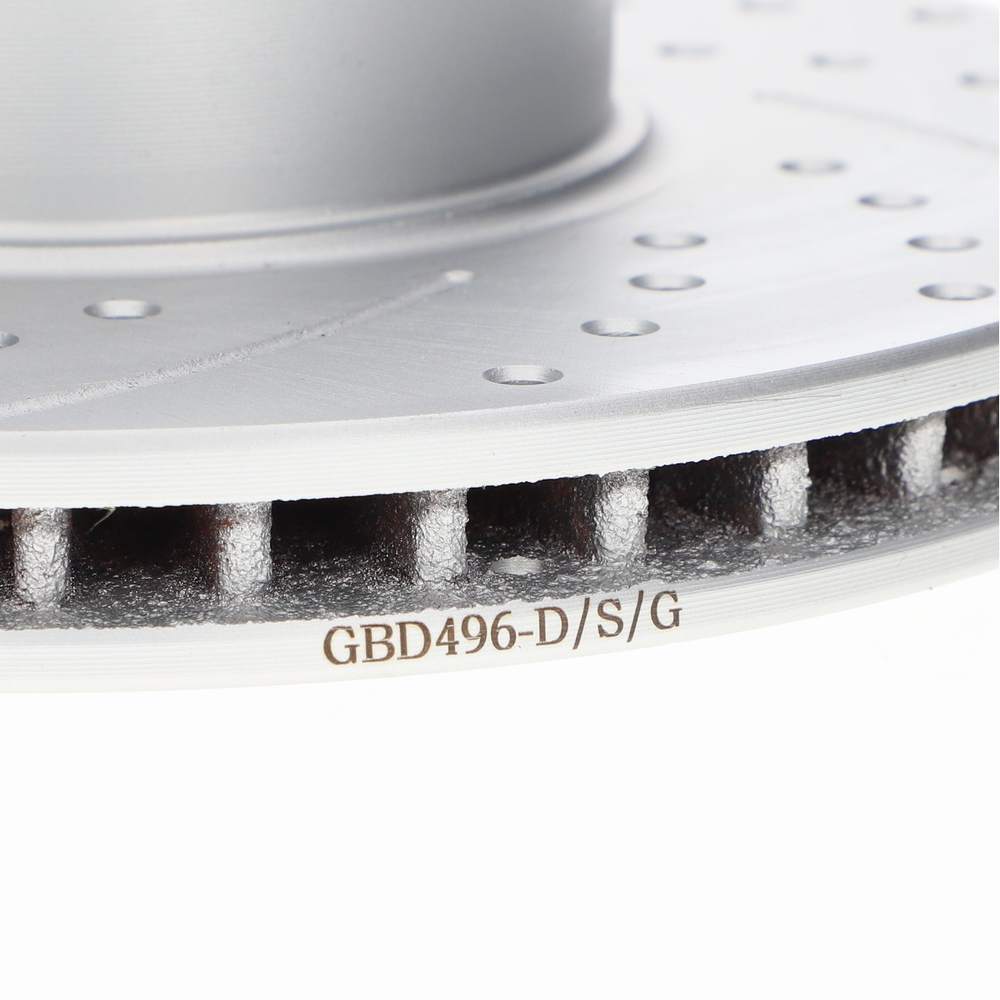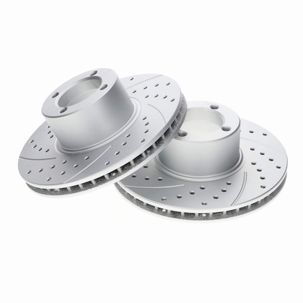 Pair of uprated vented brake discs designed for the 8.4″ 4 pot conversion setup, as fitted to production W&P Minis. Each disc features precision drilling and grooving to reduce dust and gas build up, enhancing braking efficiency and pedal feel. A durable Geomet coating provides improved corrosion resistance and a cleaner, more premium appearance. Geomet is a water based zinc–aluminium flake coating held together by an inorganic binder. It forms a thin, durable metallic layer on steel or iron parts, protecting them from corrosion without using hexavalent or trivalent chromium. Interchangeable with Motaclan part GBD496