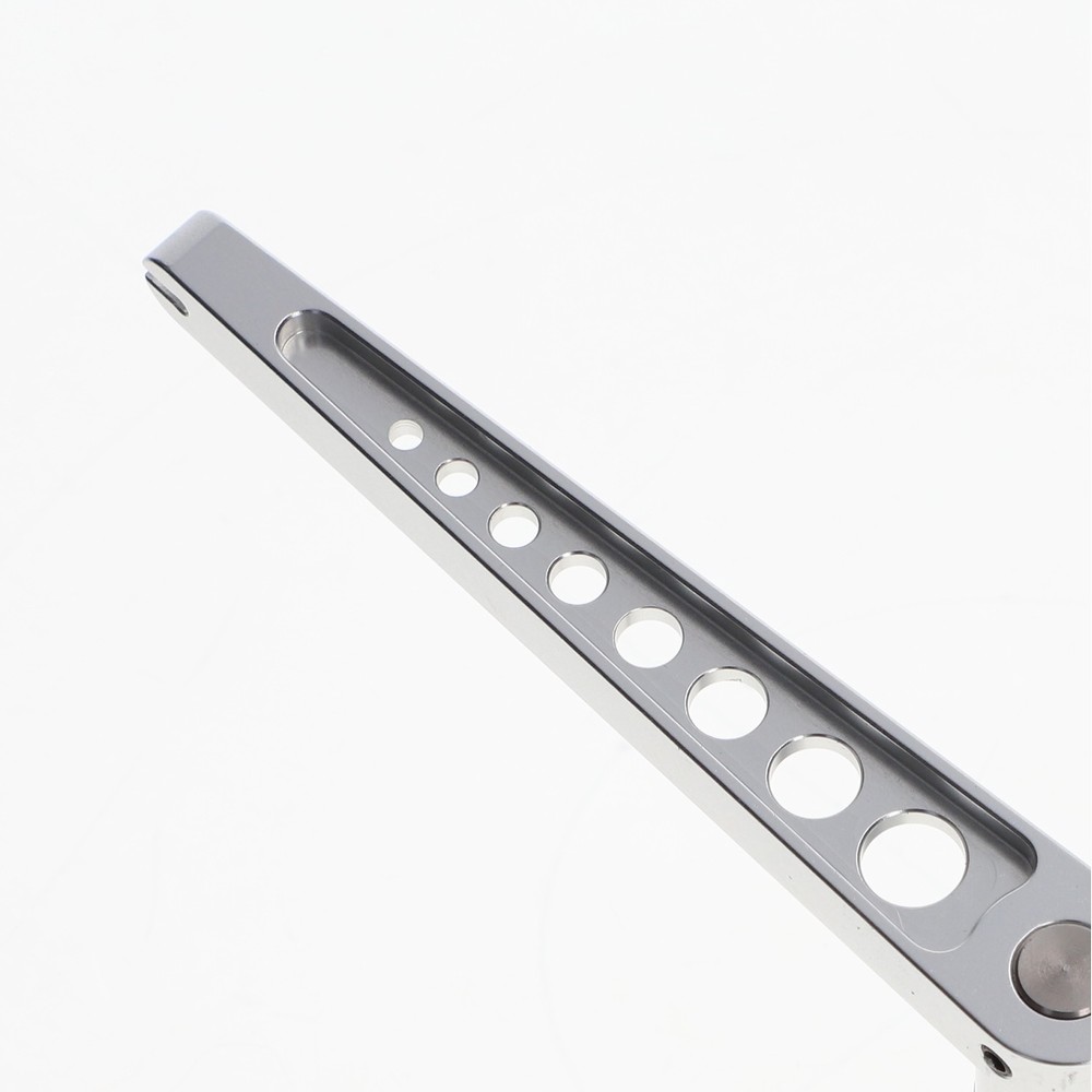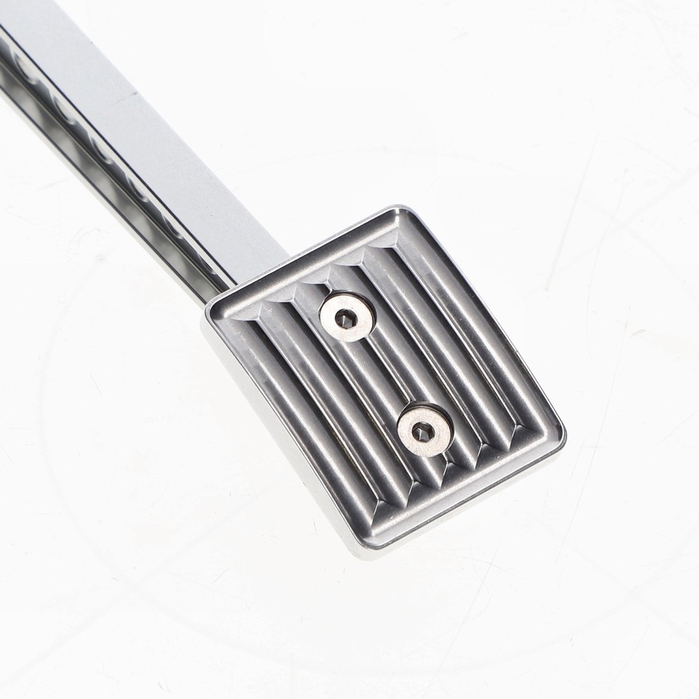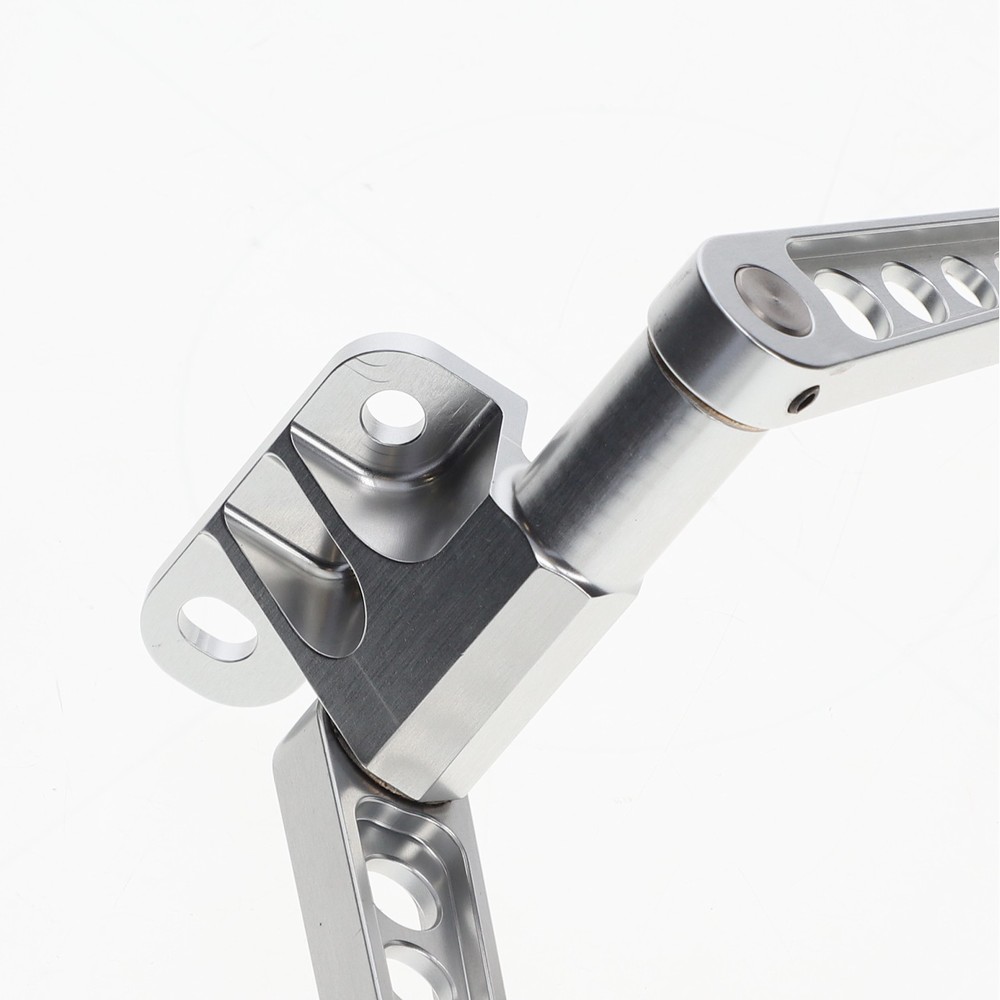 - Main pedal arm: CNC‑machined aluminium, anodised in silver to increase corrosion resistance and surface hardness.